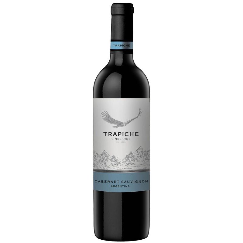 Trapiche Vineyards Cabernet Sauvignon, elaborado 100% com uvas da variedade Cabernet Sauvignon, proveniente de vinhedos de Santa Rosa, na região de Mendoza na Argentina. Tinto de coloração vermelho-rubi brilhante, encantador aroma com notas de nozes e avelãs, paladar suave com taninos maduros e sedosos. Final longo e equilibrado, ideal para acompanhar carnes vermelhas, massas com molho ao sugo e queijos de massa semidura. Graduação alcoólica: 13,5%.