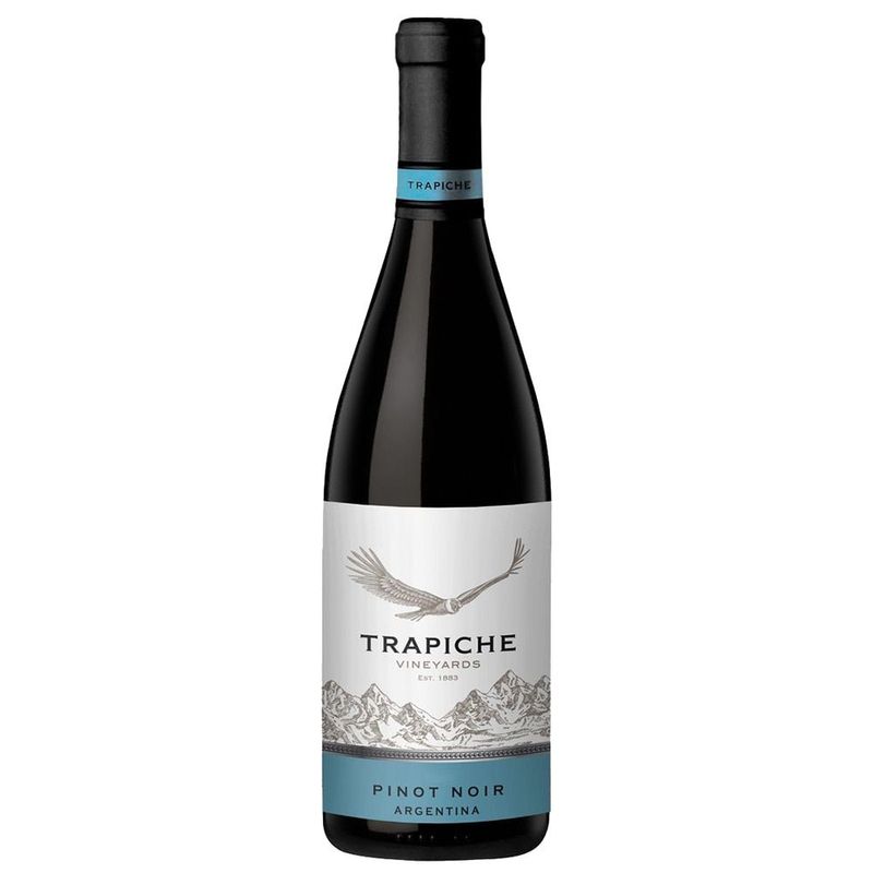 Vinho argentino Trapiche Pinot Noir, elaborado com uvas selecionadas provenientes de vinhedos de altitudes elevadas da região de Mendoza. Elaborado 100% com a variedade Pinot Noir, é um tinto leve, de coloração vermelho rubi claro e brilhante e com exuberante aroma de frutas vermelhas como ameixa e cereja. Jovial e fresco, taninos quase imperceptíveis e com viva acidez, acompanha muito bem massas e carnes brancas. Graduação Alcoólica: 13%.