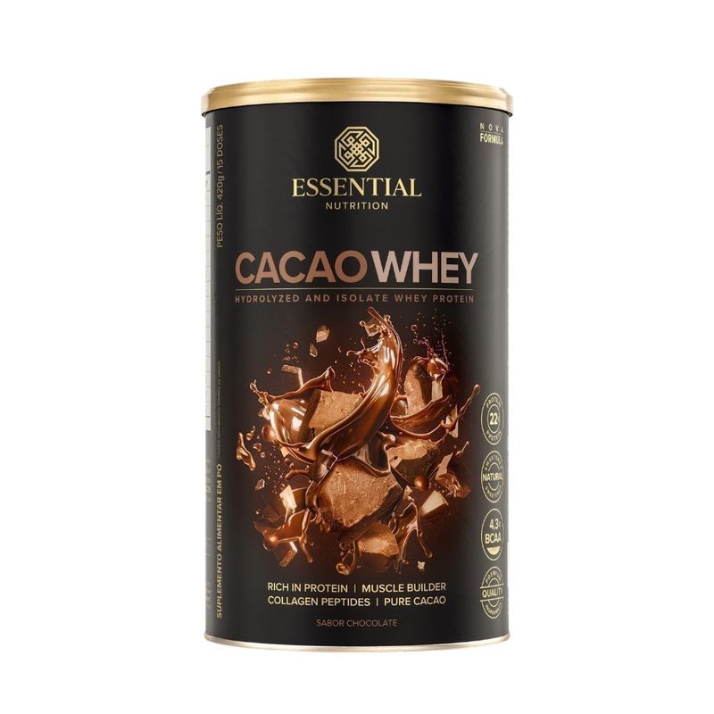 O Whey Protein Chocolate Cacao Essential Nutrition 960g é um suplemento alimentar desenvolvido para atletas e praticantes de atividades físicas que buscam um produto de alta qualidade para auxiliar no ganho de massa muscular, na recuperação pós-treino e na manutenção da performance. Elaborado com whey protein concentrada de rápida absorção, este suplemento oferece um perfil completo de aminoácidos essenciais, incluindo os BCAAs (valina, leucina e isoleucina), fundamentais para a síntese proteica e a redução da fadiga muscular. Com sabor intenso e autêntico de chocolate cacau, cada porção proporciona uma experiência saborosa, facilitando o consumo diário e tornando o momento do suplemento um prazer. A embalagem de 960g oferece um excelente custo-benefício, com alto rendimento de porções, sendo ideal para quem utiliza whey protein regularmente como parte da rotina de treinos e alimentação. Sua fórmula é de fácil digestão e pode ser consumida antes ou após os exercícios, ou como um lanche prático e nutritivo ao longo do dia, contribuindo para a saciedade e para a manutenção da massa magra. É importante que o consumo seja orientado por nutricionista ou médico, e que o produto seja utilizado como parte de uma alimentação equilibrada e um estilo de vida saudável. A marca Essential Nutrition é reconhecida pela qualidade de seus suplementos, garantindo pureza, eficácia e o sabor que faz a diferença no seu dia a dia de treinos.