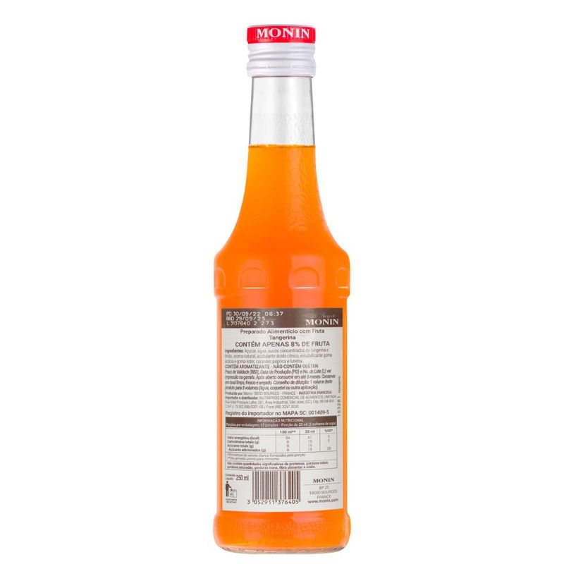 Monin Tangerina é um xarope feito com ingredientes altamente selecionados e puro açúcar, o xarope de Tangerina possui uma alta concentração de Tangerina. O xarope monin Tangerina oferece uma versatilidade excepcional para a criação de drinques.